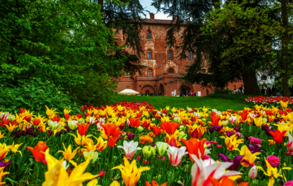 Jeden Frühling blühen mehr als 100.000 Blumen, darunter Tulpen und Narzissen, in dem prächtigen Adelssitz, der nur dreißig Kilometer von Turin entfernt liegt, und begrüßen die schöne Jahreszeit in dem herrlichen Rahmen des Parks, der im 19. Jahrhundert von Xavier Kurten, dem Hofarchitekten und Gestalter der wichtigsten Gärten der savoyischen Residenzen, angelegt wurde.
